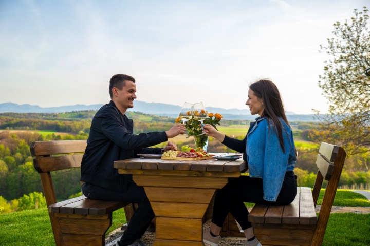 Stopite na teraso, kjer vas zbudi žvrgolenje ptic, v jesenskem času klopotanje okoliških klopotcev in pogled na kar 4 cerkvice.