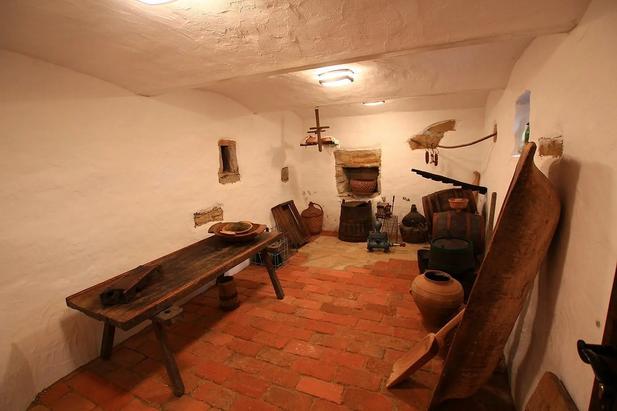 Ko odprete velika lesena vrata, ki vodijo v kletne prostore objekta, vas čaka prostor za razvajanje – stara velbana opečna klet z lesenih podom - Wellness.
